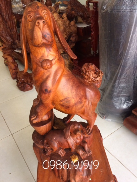 Tượng chó gỗ hương nguyên khối .