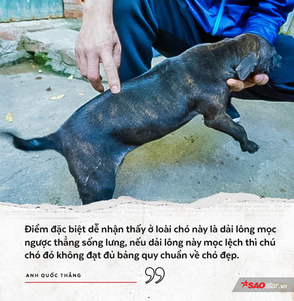 Điểm khá đặc biệt quan trọng dễ nhận thấy ở loài chó này là dải lông mọc ngược thẳng sống lưng, nếu dải lông này mọc lệch thì chú chó đó không đạt đủ bảng quy chuẩn về chó đẹp. Lưỡi chó có đốm màu đen. Hai chân thẳng tắp và song song với nhau khi nhìn từ phía trước cũng như phía bên, cách nhau vừa phải. Khuỷu chân nằm sát thân mình, không hướng vào trong cũng như ra ngoài. Cổ chân thẳng khi nhìn từ phía trước, nghiêng không đáng kể khi nhìn từ phía bên, ngón chân chụm và khít và nhô cao .