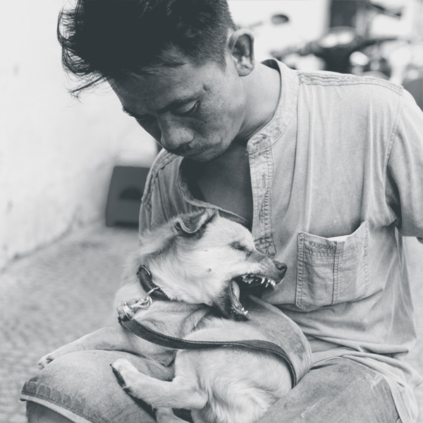 “Nó thương con chó lắm. Hiền hiền hề hề vậy thôi, ai đụng vô con chó là nó quạu đó. Dắt qua đường mà ai lỡ quẹt xe trúng con chó là thể nào cũng có chuyện. Ngày xưa, trước khi nhận nuôi con này, nó từng có một con chó khác. Quý lắm. Rồi bị bắt mất.