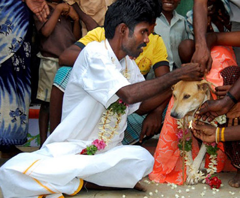 Vào ngày 11/6/2003, Karnamoni Handsa, một bé gái Đông Ấn, cưới một chú chó đi lạc như một cách để tránh tà ( một lời nguyền được cho là ếm khi cô bé có một chiếc răng mọc ở nướu trên – một điềm xấu theo như ý niệm của người tộc Santhal ) .