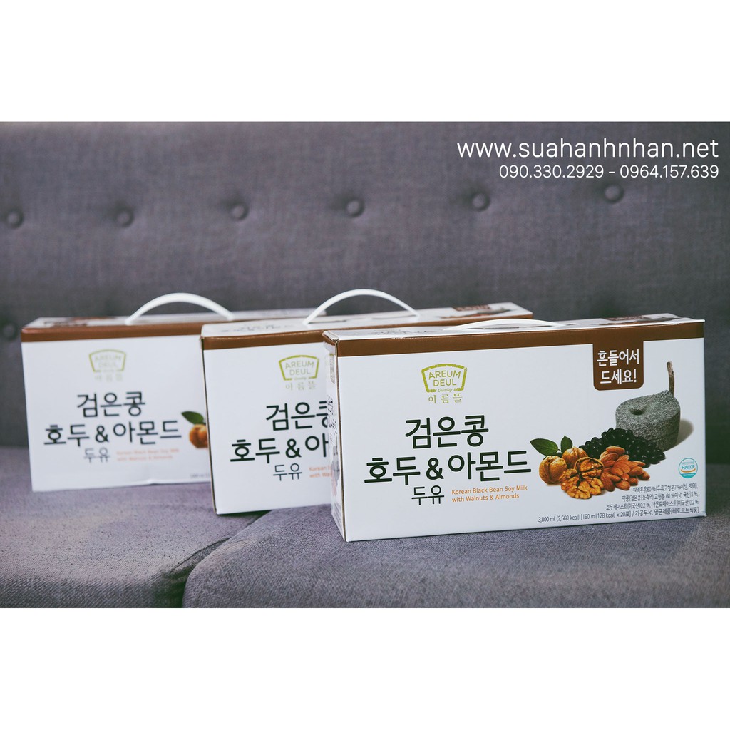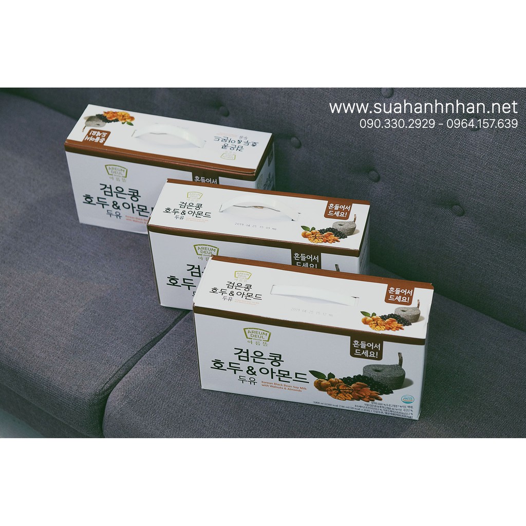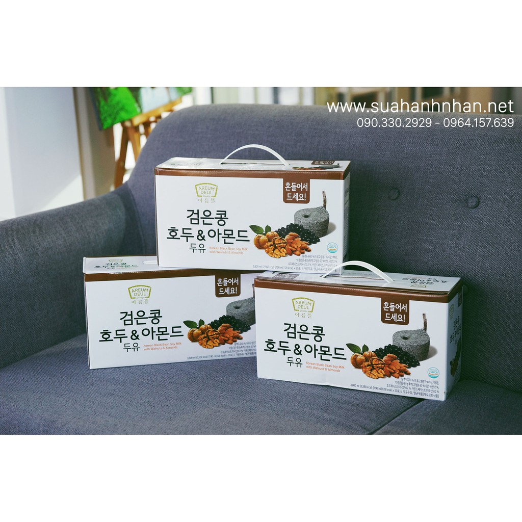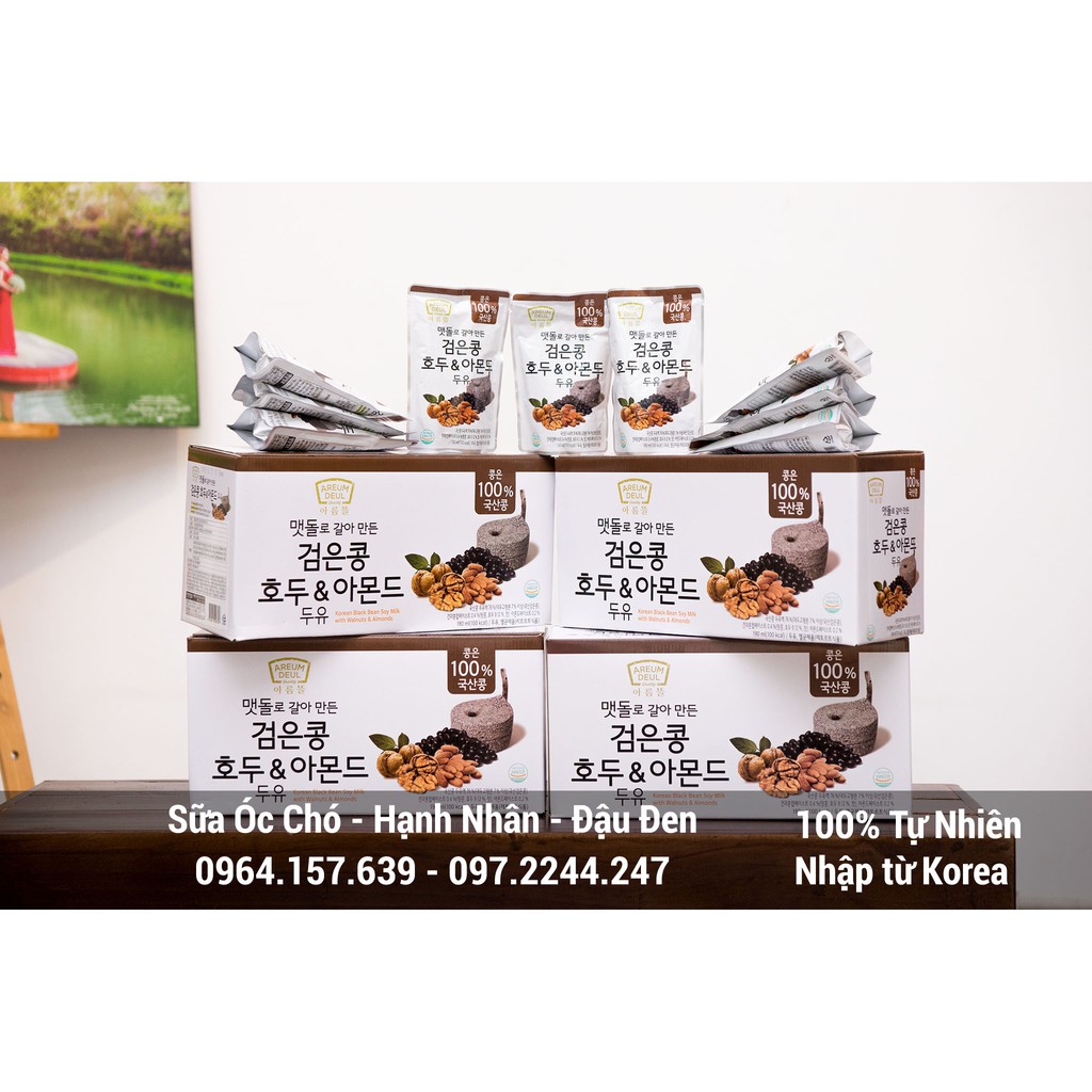 Sữa Hạnh Nhân Óc Chó Đậu Đen Hàn Quốc ( Túi Trắng – Đặc Ngon Ngọt Dịu hơn loại Nâu – Đen)* Hạn dùng :(mỗi 1 container nhập về Cty sẽ ghi hạn sử dụng cho các bạn tiện theo dõi chọn lựa mua sản phẩm mới nhất theo lô hàng)* Hình ảnh sản phẩm quý khách xem là thực tế được chúng tôi chụp tại shop, không phải hàng trôi nổi tải hình trên mạng. Xin đừng so sánh giá cả vì hàng nhập khẩu đóng thuế vệ sinh an toàn thực phẩm đầy đủ ạ. Ngoài ra đây là công ty sữa nổi tiếng bên Hàn, giống như Vinamilk và TH Truemilk uống sữa sẽ thấy tiền nào của nấy.* Sản phẩm được chứng nhận của Bộ Y Tế & Cục An Toàn Thực Phẩm (ảnh đính kèm do chúng tôi Tự Chụp ở trên)Sơ qua về sản phẩm:- Quả óc chó kết hợp với đậu đen Hàn Quốc có tác dụng giảm cholesterons, chống lão hóa và tăng cường sức đề kh.á.n.g rất tốt cho sức khỏe người sử dụng.- Quả óc chó chứa axit béo Omega-3, giàu chất xơ, vitamin B, magiê, vitamin E giúp bảo vệ hệ tim mạch, bảo vệ động mạch do có nhiều chất béo chưa bão hoà. Tăng cường sức khỏe cho não bộ, hệ thần kinh.- Hạnh nhân là ngưồn cung cấp dồi dào về vitamin E, calcium, phosphor, sắt và magnesium. Nó còn chứa kẽm, selenium, đồng và niacin,hạnh nhân có nhiểu chất bổ dưỡng nhất.- Nước đậu đen hạnh nhân óc chó hàn quốc là nguồn cung cấp isulin cao cho bệnh nhân bị mắc bệnh tiểu đường. Cung cấp lượng lớn các dưỡng chất Ca, K, Mg, giúp hệ tiêu hóa nhuận tràng, ngăn ngừa sỏi mật do giàu chất xơ.Đối tượng nên dùng:- Phụ nữ có thai: Lượng Omega-3 trong quả óc chó lớn hơn 5 lần trong cá hồi, giúp thúc đẩy sự phát triển đại não của thai nhi và trẻ nhỏ. Nếu các mẹ kiên trì ăn quả óc chó trong suốt thời gian thai kỳ, em bé sinh ra sẽ rất thông minh khỏe mạnh.– Trẻ em, học sinh cần ăn để hỗ trợ cho trí nhớ (Bé trên 1 tuổi là dùng được)– Vận động viên, dân chơi thể thao.– Người ăn chay, thiếu dinh dưỡng.– Người suy giảm trí nhớ, trí nhớ kém.– Người già khó ăn, khó ngủ, đau yếu.– Bệnh nhân tiểu đường, tim mạch, ung thư.Giá 1 thùng 20 gói (190m/gói) : theo km hiện hành (Nhận free ship COD – Giao hàng nhận tiền tại nhà)Hotline :#suasuadauden